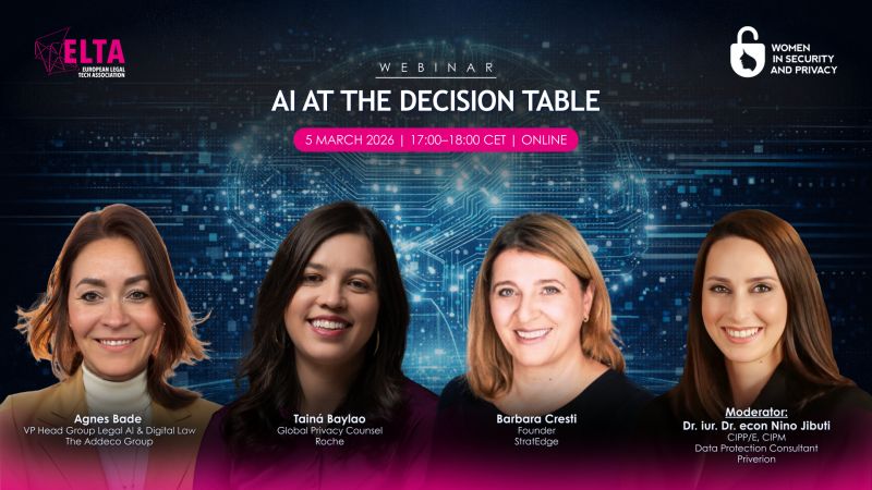 The European Legal Technology Association & Women in Security & Privacy's webinar will focus on how AI is governed, procured, and overseen.